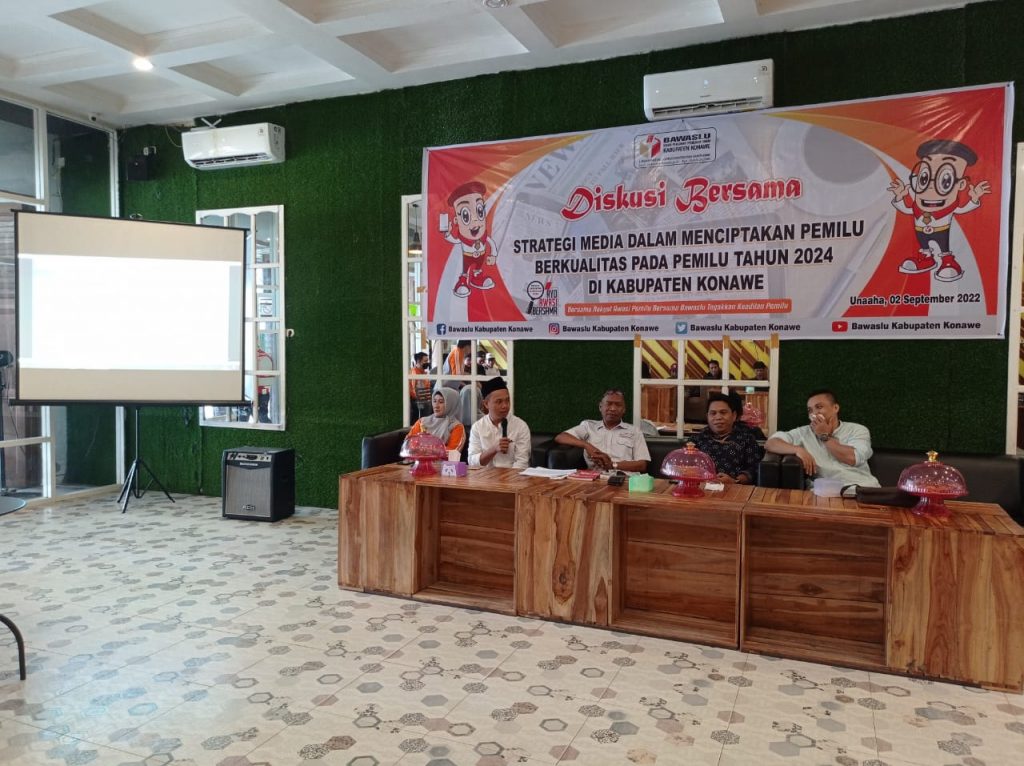 Diskusi yang bertajuk ‘strategi media dalam menciptakan Pemilu berkualitas pada Pemilu tahun 2024 di Kabupeten Konawe’ dihadiri ketua Bawaslu Sabdah, Anggota Bawaslu Rahmat dan Indra Eka Putra, serta Arafat selaku pemateri itu berlangsung di salah satu Caffe yang ada di Kabupaten Konawe yakni Rans Cafe, Jumat (2/9/2022).