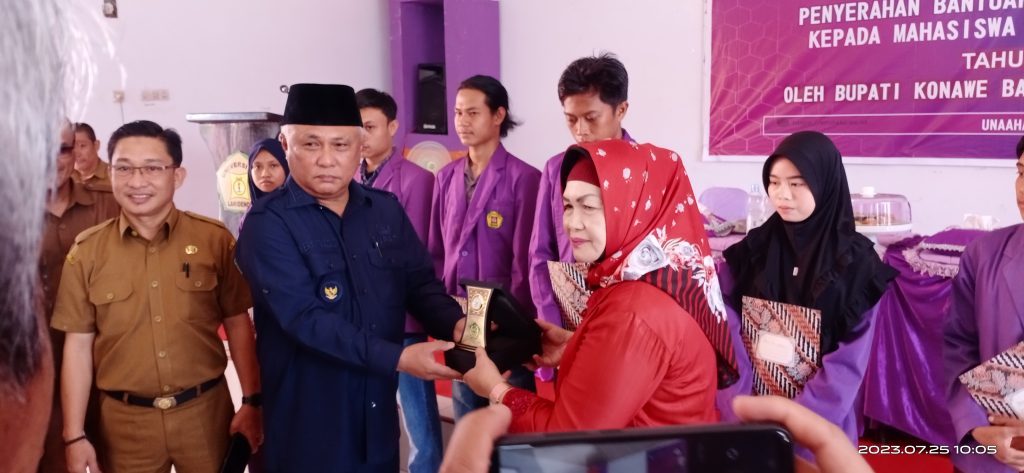 Dalam kesempatannya, Bupati Konawe Kery Saiful Konggoasa (KSK) menghadiri penyerahan bantuan beasiswa dari Pemerintah Kabupaten (Pemkab) untuk ratusan mahasiswa Universitas Lakidende (Unilaki), Selasa (25/7/2023).
